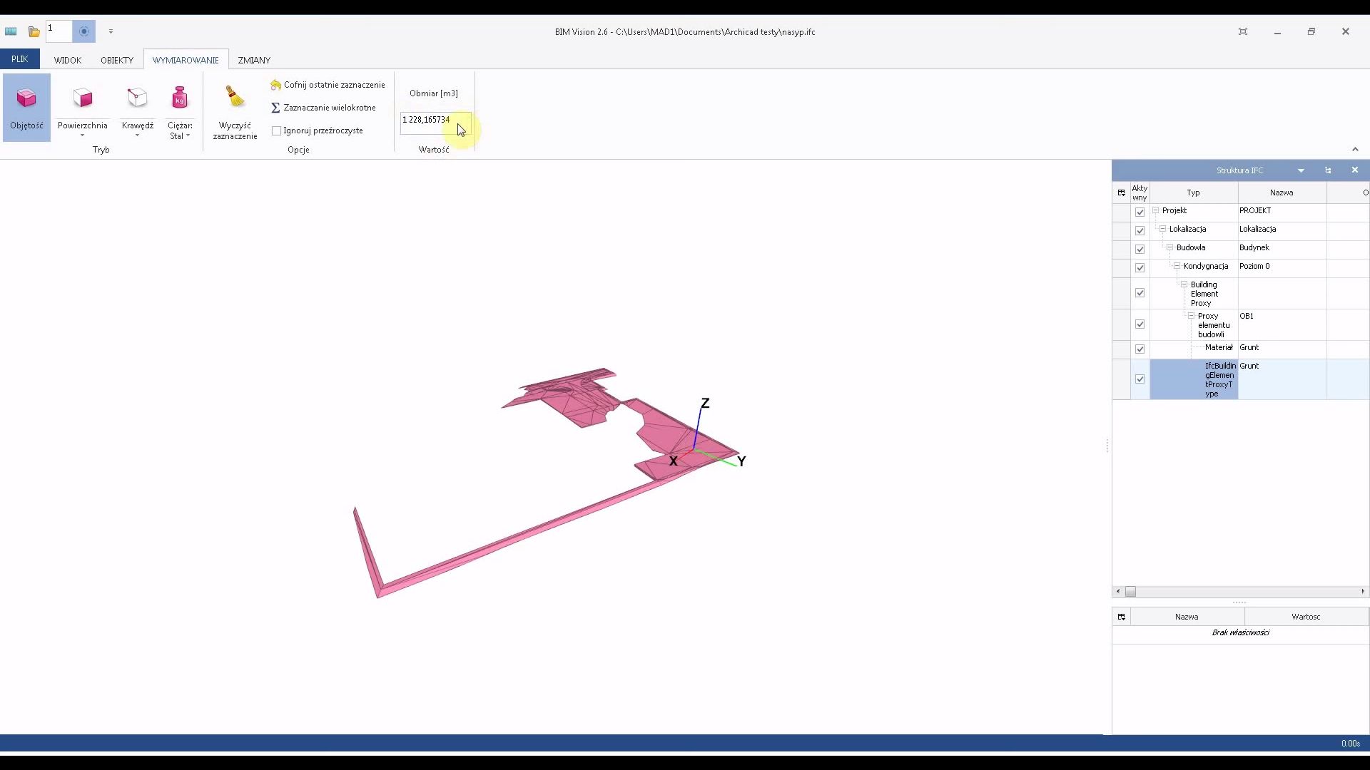 Dlaczego ta cała „zabawa” bryłami była tak ważna? Tak jak w przypadku modelu BIM budynku ważna jest transparentność danych przedmiarowych. Często dane na temat wykopów i nasypów są obliczane wewnętrznie przez programy i nie sposób w nie uwierzyć kiedy dostajemy excela z ilościami… Model IFC na pewno pomoże je zrozumieć i kto wie może nawet uwierzyć 🙂
