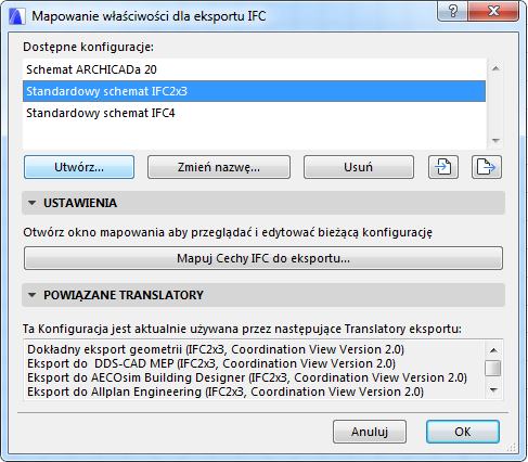 jednak aby „zapanować” nad właściwościami eksportowanymi do modelu IFC i świadomie dobierać tylko potrzebne i odpowiednio przypisane dane, należy utworzyć własną definicję mapowania.