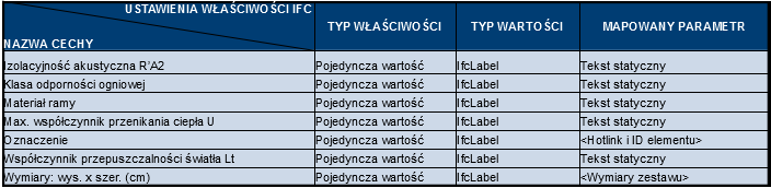 Rysunek 3: Mapowanie Cech IFC do eksportu