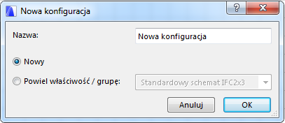 Rysunek 2: Tworzenie nowej konfiguracji mapowania właściwości dla eksportu IFC