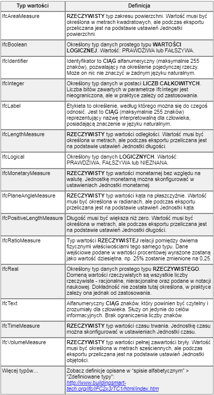Jeśli przy tworzeniu właściwości IFC, nie ustawilibyśmy rzeczywistego typu wartości (Ifc LengthMeasure) tylko np. etykietę (IfcLabel) w pliku IFC otrzymalibyśmy wartość wyeksportowaną w jednostkach ustawionych w preferencjach projektu, ale bez dodanego symbolu jednostki (byłaby to wartość niemierzalna w związku czym „niewidoczna” dla programów tworzących zestawienia).