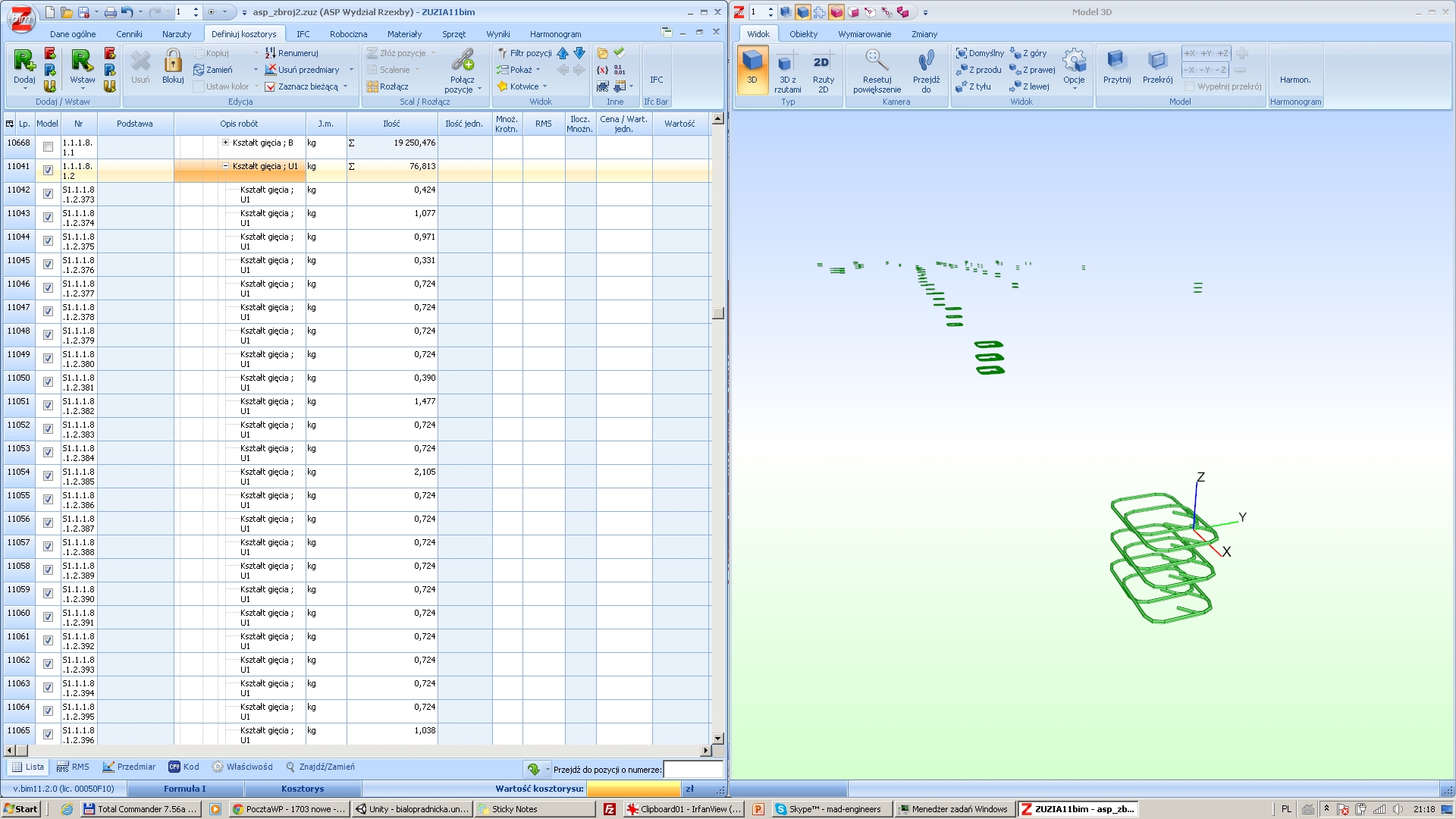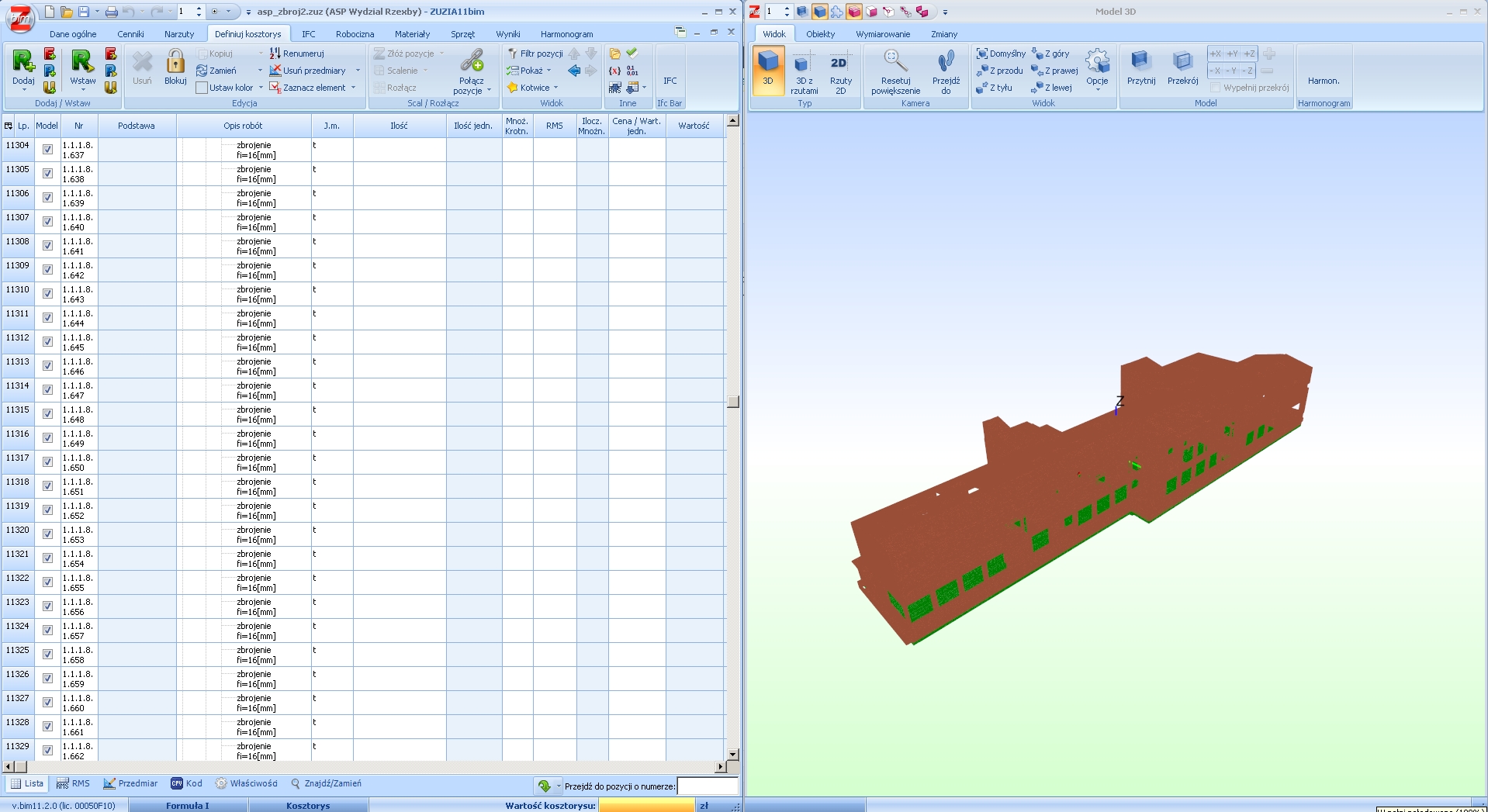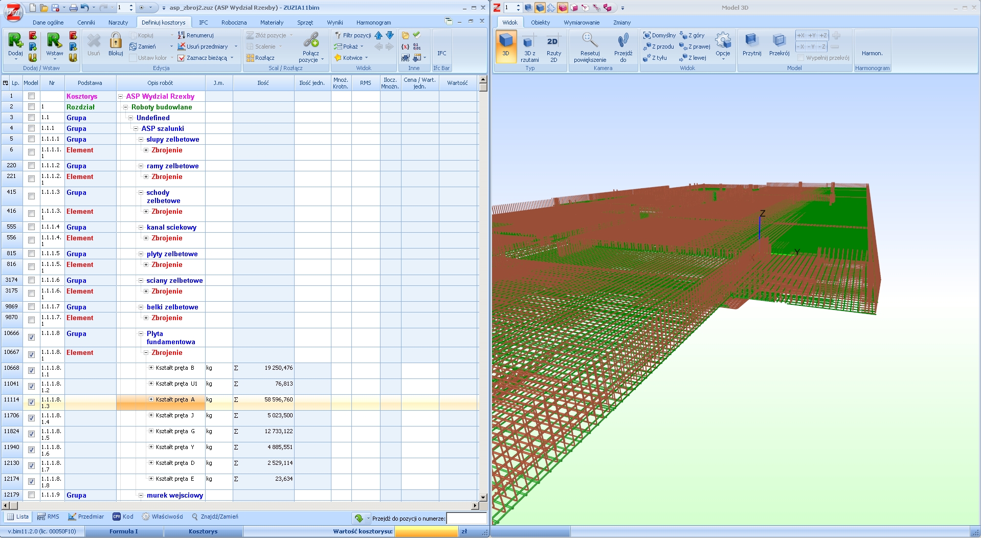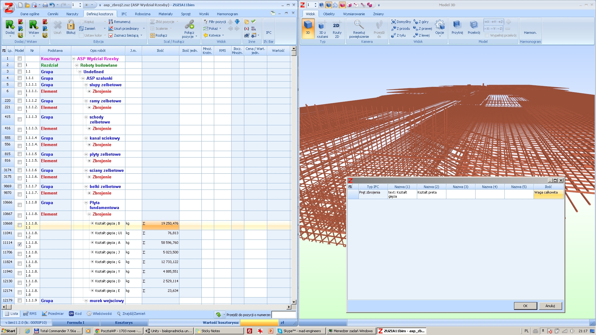 Dzisiaj pojawiła się prośba z budowy czy jest szansa na szybką informację ile jest prętów giętych a ile prostych w płycie fundamentowej. Raport był potrzebny dla walcowni w celach wyceny. Zrobienie takiego raportu to jednak dwie trzy godzinki w Tekli. Spróbowałem to zrobić w ZuziBIM, choć nie od razu o niej pomyślałem 🙂 Aby stworzyć takie podsumowanie zeszło mi jakieś 2 minuty! Poniżej kilka zrzutów ekranu jak do tego doszło. Wykorzystałem opcję grupowego pobierania konkretnych danych z pliku IFC. Ciekawie to wyszło więc nie mogłem się powstrzymać aby o tym nie napisać kilu słów 🙂