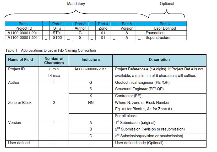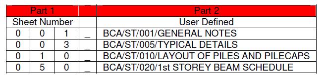 źródło: „BIM e – Submission Guideline Structural”[2], pkt. 1.8b, str.9, „Naming Convention for individual Sheets”