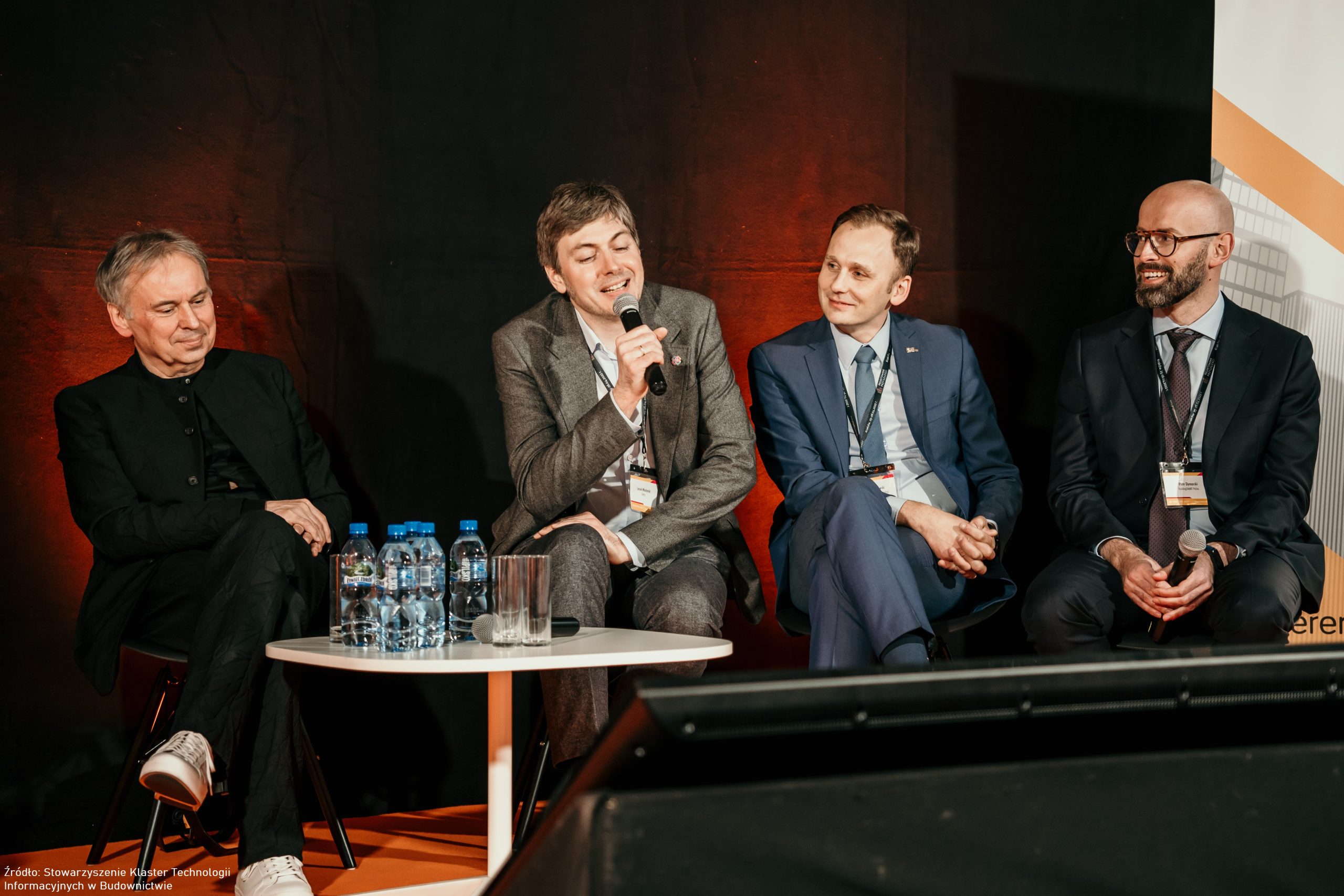 Ostatnim punktem w zakresie merytorycznym tegorocznej edycji konferencji Projektowanie Przyszłości była debata, którą poprowadziła Katarzyna Orlińska-Dejer. Tomasz Piotrowski (MRiT), Piotr Dymarski (buildingSMART Polska), Robert Szczepaniak (BIM Klaster) oraz – z uwagi na nieobecność Aleksandra Szernera ze Stowarzyszenia BIM – ochotnik z sali, którym okazał się Leszek Włochyński, odpowiedzieli na następujące pytania: