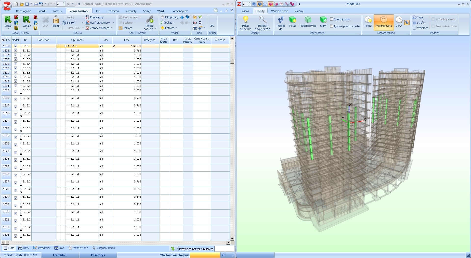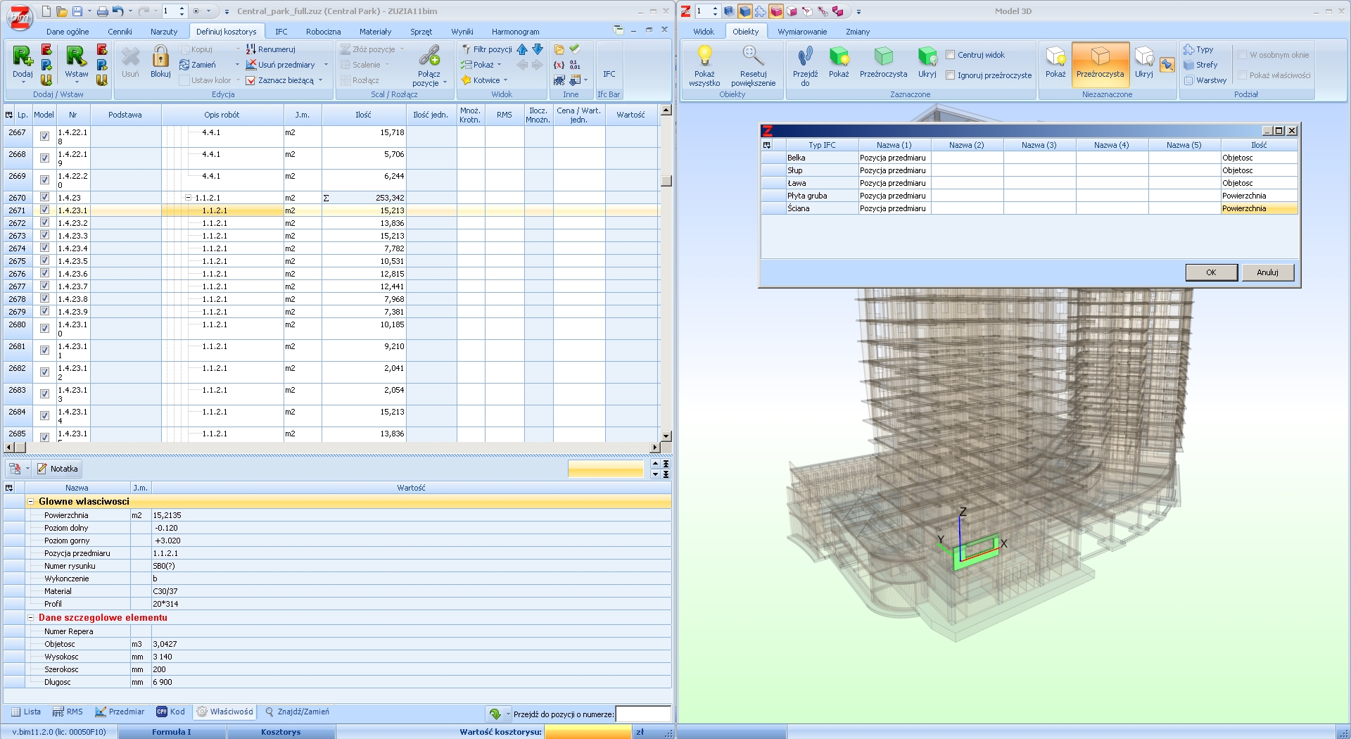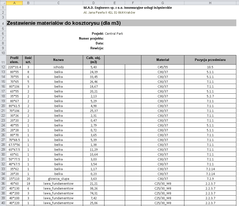 Zrobiliśmy więc model w taki sposób aby każdy element miał wpisaną pozycję z excela. Z jednej strony pozwoliło nam to nie popełnić żadnego błędu z drugiej strony generalny wykonawca który zamówił weryfikację mógł „wyspowiadać się” z każdego pytania typu: a czemu tu jest taka ilość 🙂