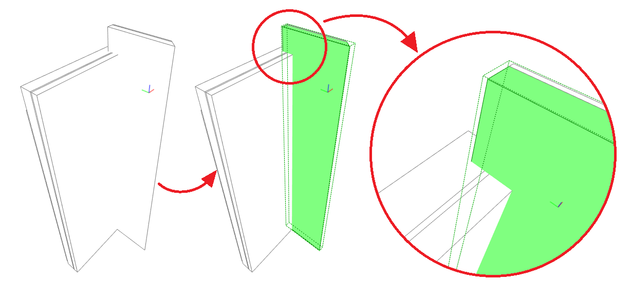 • Docięcia elementów w newralgicznych punktach w ogóle nie są zrealizowane w 3D – wykonuje się je na płasko detalami 2D (zaczerpniętymi chociażby z innej dokumentacji),