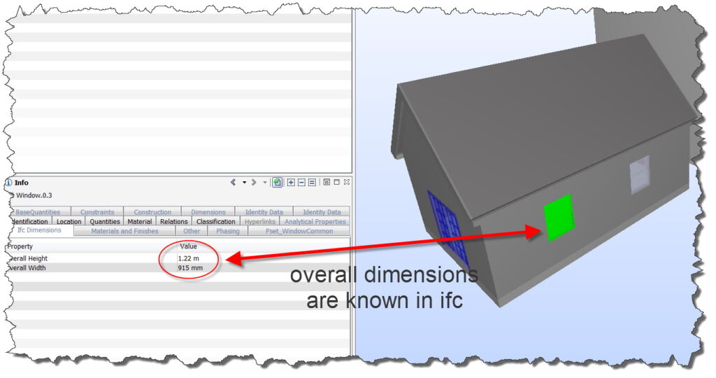 Mimo to uważam, że konwersja na import powinna być znacznie lepsza. Wartości podstawowych parametrów takich jak wysokość i szerokość powinny być pobierane przy imporcie z IFC. Ostatecznie znamy te wymiary z pliku IFC (rys. 5), ale nie są one przesyłane do odpowiednich parametrów Revita (rys. 6). Mogę zrozumieć, że parametry nie są już związane z geometrią, ale teraz nie jest nawet możliwe, aby rozplanować całkowite gabaryty obiektu.