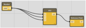 Tak właśnie działa programowanie wizualne. Nie wpisujemy kodu, nie używamy odpowiedniej składni, wciąż pilnując, by była zgodna z wybranym przez nas językiem programowania. Nic z tych rzeczy. Czerpiemy po prostu z zestawu kontrolek i modułów wykonawczych, łączymy je z sobą, a efekt działania obserwujemy na ekranie. Czy tylko w postaci chmury punktów? Oczywiście nie, możemy z powodzeniem wyświetlać odcinki, krzywe, płaszczyzny, bryły… belki, słupy, panele ścienne itd. Możemy po prostu w ten sposób modelować, chociażby bryłę architektoniczną bądź konstrukcję budynku.